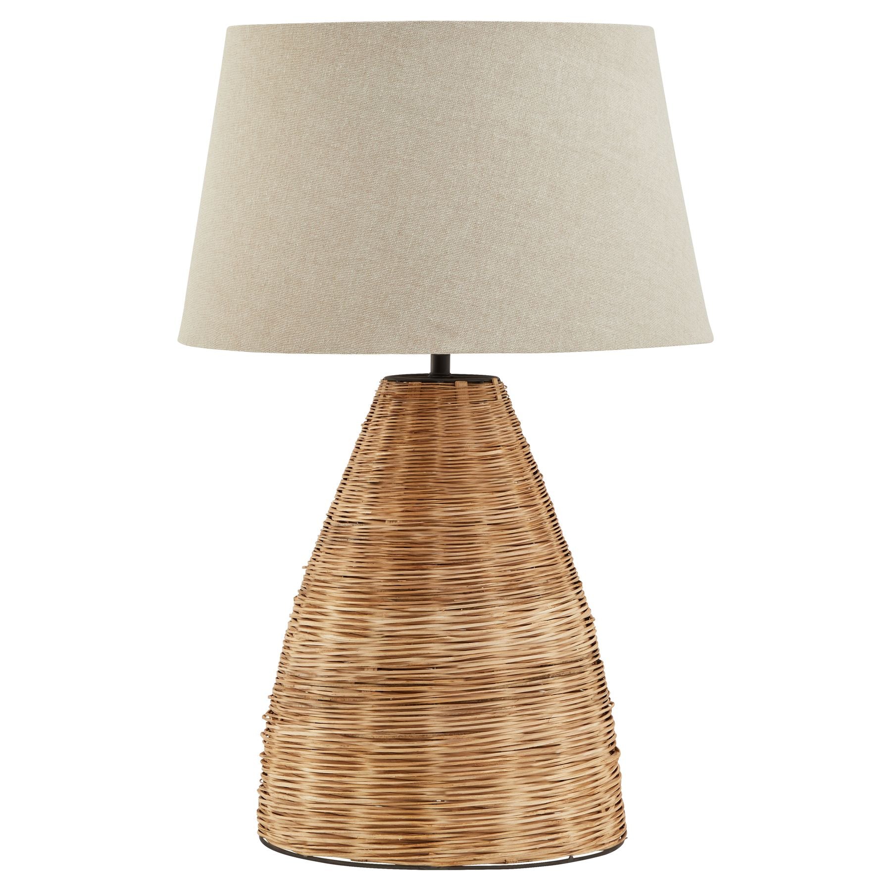 Artfully designed with meticulous attention to detail, this exceptional table lamp showcases the organic beauty of natural wicker woven into a graceful conical form by skilled artisans. The intricate weaving pattern creates a mesmerizing interplay of light and shadow, while the carefully selected natural rattan material adds warmth and textural depth to any interior space. The thoughtfully paired linen shade diffuses light beautifully, creating an inviting ambiance perfect for both contemporary and rustic settings. This lamp harmoniously balances artisanal craftsmanship with modern design sensibilities, making it an ideal choice for retailers seeking distinctive lighting options that appeal to design-conscious customers. For a cohesive collection, consider pairing with our curated selection of complementary accessories - the Garda Grey Glazed Tall Juniper Vase provides vertical interest, while the Matt White Ceramic Column Candle Holder and Stone Ceramic Candle Holder create a layered lighting effect. The Amalfi Grey King Chess Piece adds an architectural element, and the Large White Orchid in Stone Pot introduces organic shapes that echo the lamp's natural materials. This thoughtful combination offers retailers a complete styling solution that will resonate with customers seeking to create atmospherically lit, well-composed spaces.