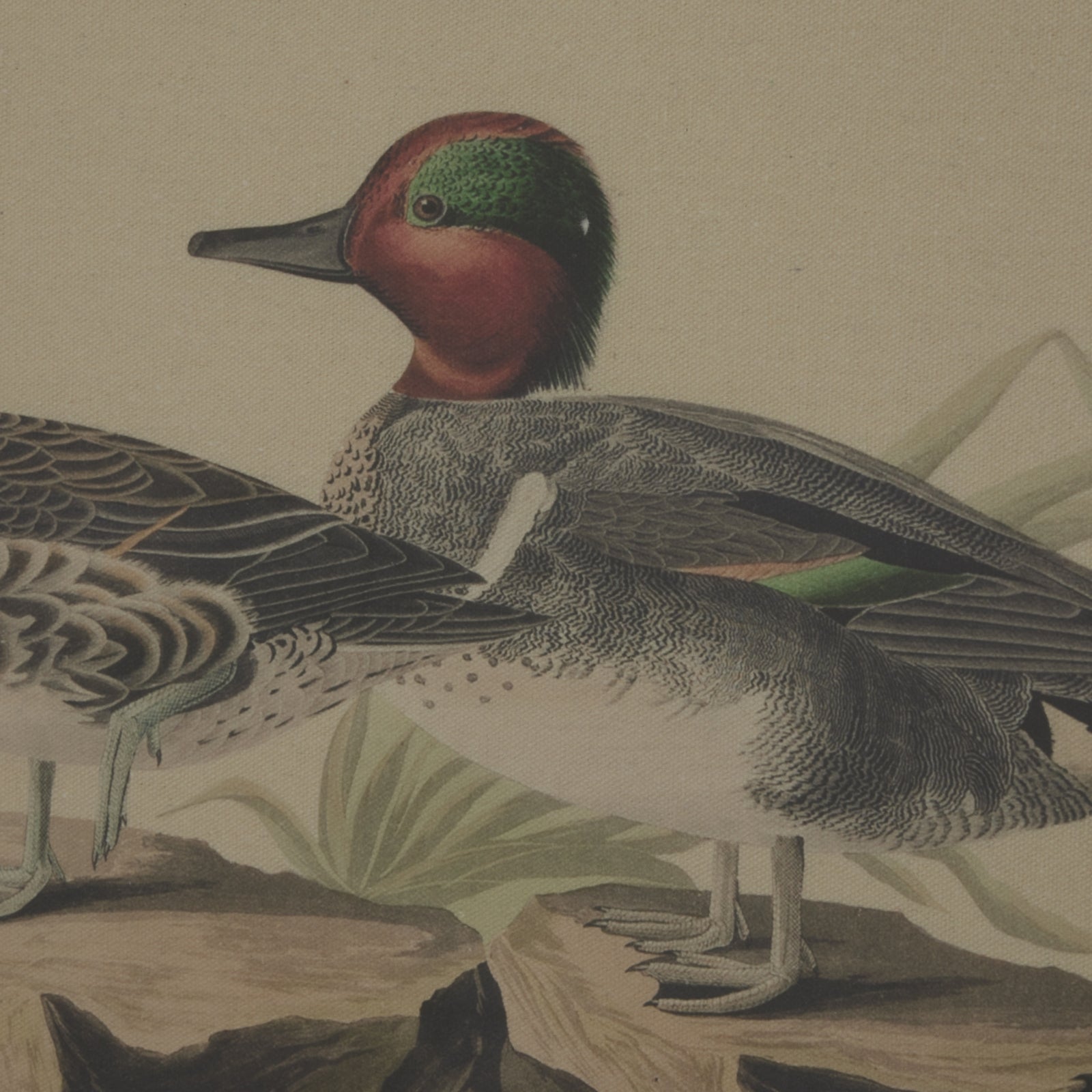 Delicately rendered teals on natural linen create an atmosphere of refined artistry in this wall piece from the Flora & Fauna Collection. The thoughtfully composed waterfowl illustration demonstrates remarkable detail against the organic texture of the linen backdrop, while the beaded frame provides a graceful border that enhances the artwork's natural appeal. This piece establishes a serene focal point that works magnificently in both traditional and modern settings, making it an essential addition to any curated retail collection. The neutral palette allows for seamless integration into diverse interior schemes, while the subtle sheen of the beaded frame catches light to create dimensional interest. For maximum visual impact, consider pairing with complementary pieces from the Flora & Fauna Collection, such as the Warblers on Linen or Avocet on Linen artworks. The collection's cohesive design language extends through each piece, allowing retailers to offer customers coordinated options for gallery walls or room-spanning displays. The authenticity of the linen substrate combined with the precise rendering of the subject matter presents an investment-worthy artwork that promises enduring appeal for discerning clientele.