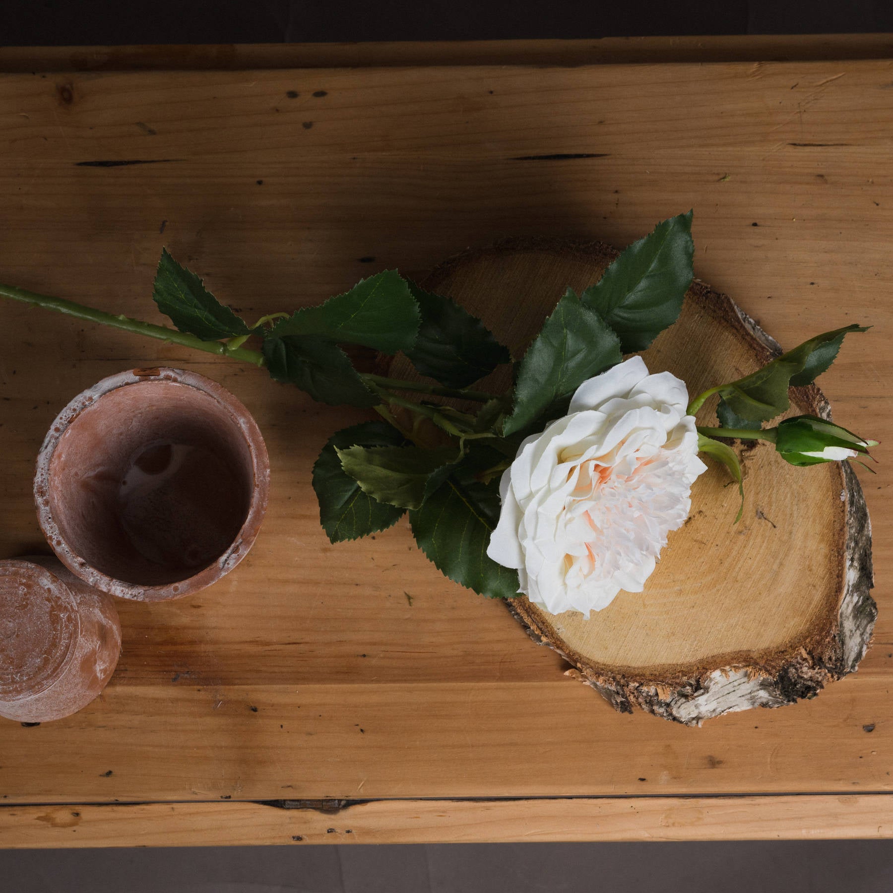 Captivate your customers with our exquisite White Garden Rose Spray, a botanical masterpiece that embodies timeless sophistication. This lifelike arrangement showcases the cherished Rosa x grandiflora in its full glory, featuring delicate ivory petals that unfold in layers of soft, romantic allure. Each 80cm spray presents an array of pristine roses at various stages of bloom, from elegant buds to fully open flowers, creating a naturally dynamic display. The arrangement is complemented by verdant foliage with realistically textured leaves and stems, providing a perfect backdrop for the creamy white blossoms. Crafted from premium materials, this versatile spray offers a durable, low-maintenance alternative to fresh flowers. It's perfect for creating stunning centerpieces, adorning mantels, or infusing any interior with refined charm.Pair these classic white roses with faux baby's breath for a traditional aesthetic, or combining them with vibrant peonies and dahlias for a contemporary look. The neutral palette harmonizes with diverse interior styles, from rustic farmhouse to sleek modern designs. Showcase these sprays in weathered ceramic vases for a country cottage feel, or display them in polished glass cylinders for an urban chic vibe. Their universal appeal makes them ideal for retailers serving wedding planners, home decor enthusiasts, and those seeking to bring perpetual garden beauty indoors. Add this remarkable White Garden Rose Spray to your inventory and offer your customers a touch of floral perfection that will enhance any space with its enduring elegance and versatile charm.